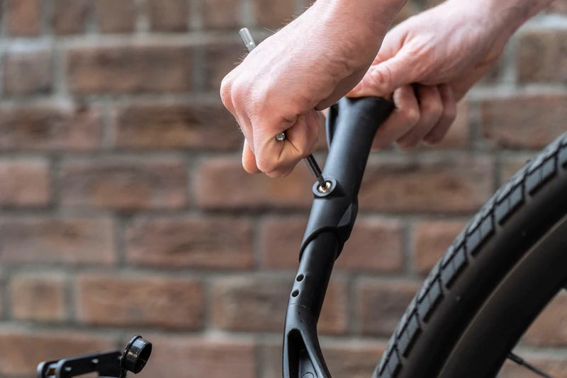 - Loosen the 3mm bolt on the backside of the kickstand with an M4 allen key. Make sure you don't fully remove the screw as it may fall into the tube and be difficult to retrieve